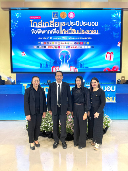 วันที่ 18 มกราคม 2569 นายบรรจง ชัยขุนพล ผู้อำนวยการกองพัฒนาระบบสนับสนุนการสหกรณ์ พร้อมด้วย นางสุรางค์ คัยนันท์ ผู้เชี่ยวชาญด้านพัฒนาธุรกิจสหกรณ์ออมทรัพย์ และข้าราชการ กรมส่งเสริมสหกรณ์ เข้าร่วมงานไกล่เกลี่ยและประนีประนอมข้อพิพาทเพื่อแก้ไขหนี้สินประชาชน ประจำปี 2569 ณ โรงแรมเอเชีย แอร์พอร์ท ชั้น 5 ห้องไดมอนด์ อาคารศูนย์การค้าเซียร์รังสิต ถนนพหลโยธิน ตำบลคูคต อำเภอลำลูกกา จังหวัดปทุมธานี